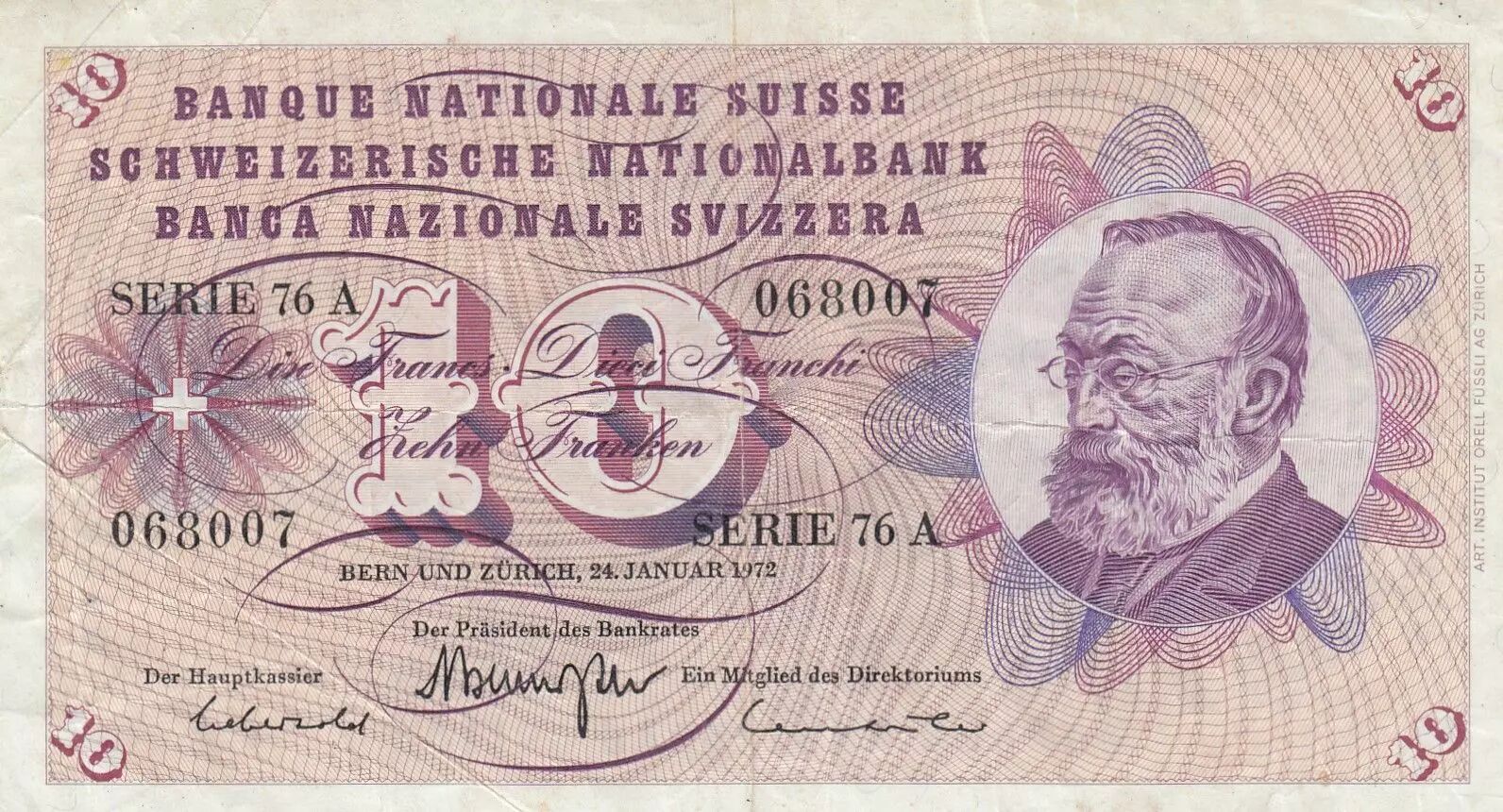 Accueil > Billets du Monde > Billets d'Europe > Suisse - Cantons Suisse > Suisse > Suisse 10 Francs - Gottfried Keller - Oeillets - 24-01-1972 - Série 76A