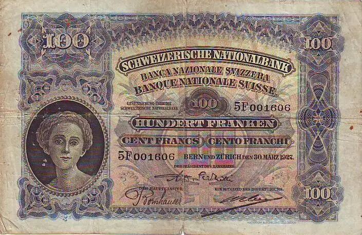 Billet Suisse 100 F Tête de Femme - Paysan