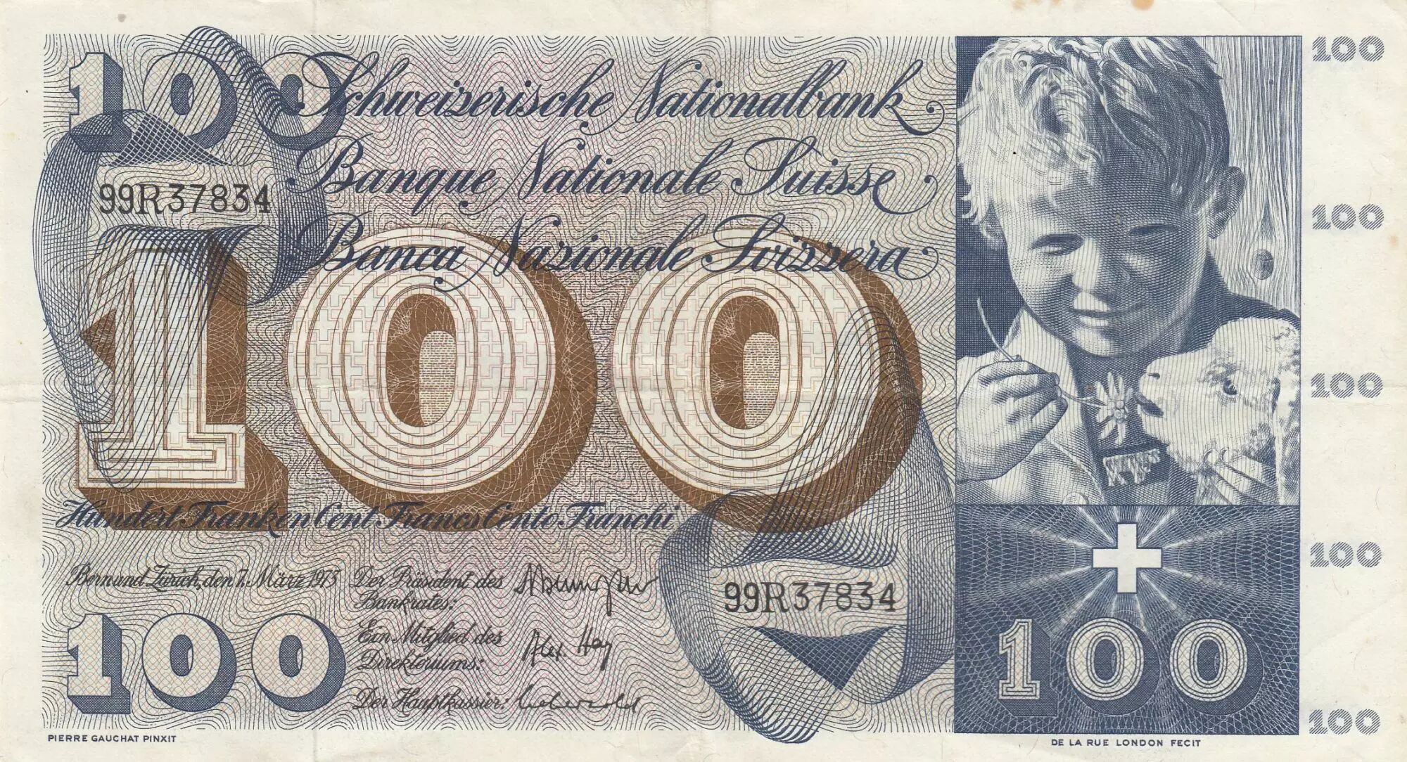Billet Suisse 100 Francs - Enfant St Martin - 07-03-1973 - Série 99R