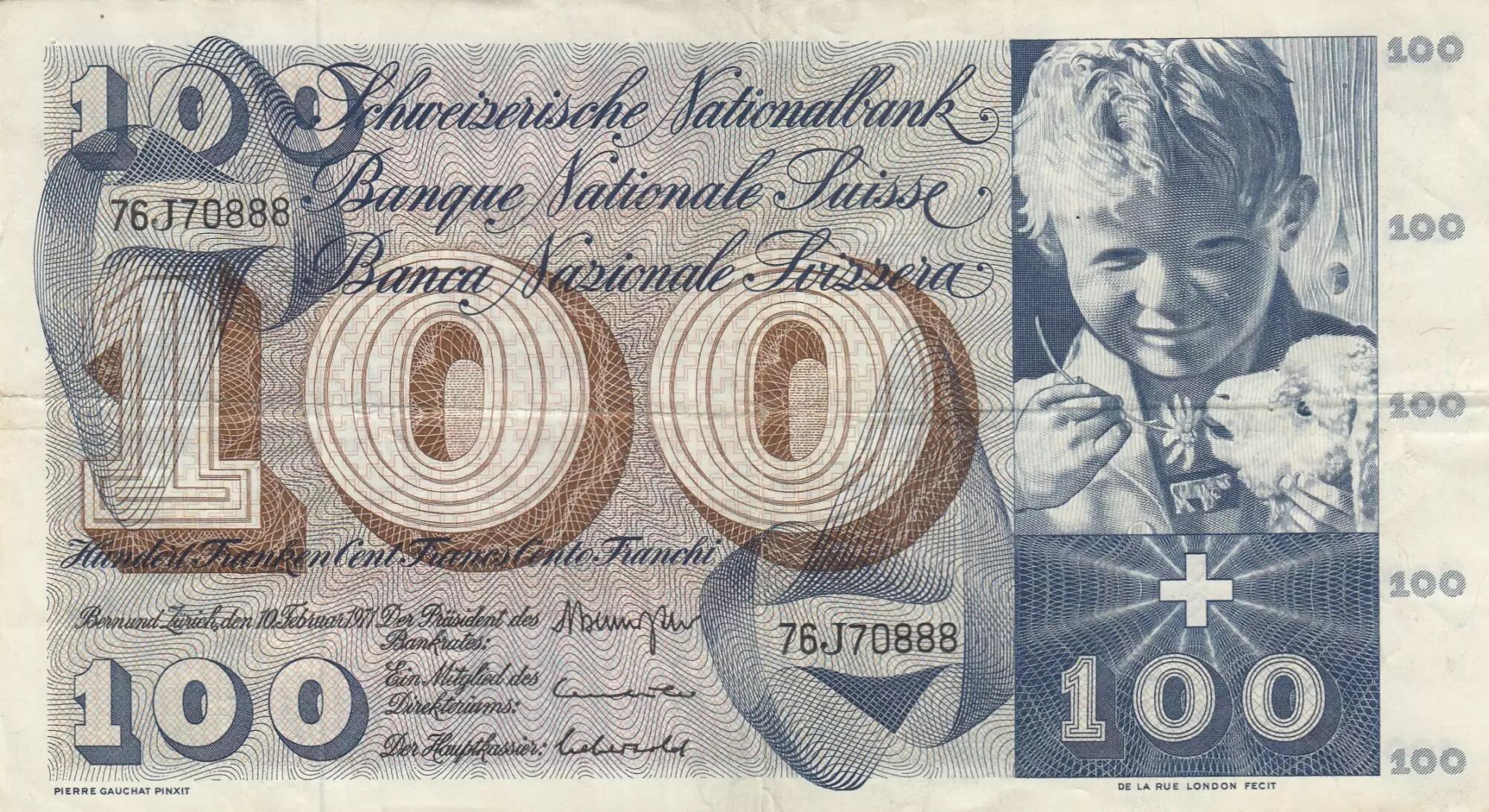Accueil > Billets du Monde > Billets d'Europe > Suisse - Cantons Suisse > Suisse > Suisse 100 Francs - Enfant St Martin - 10-02-1971 - Série 76J