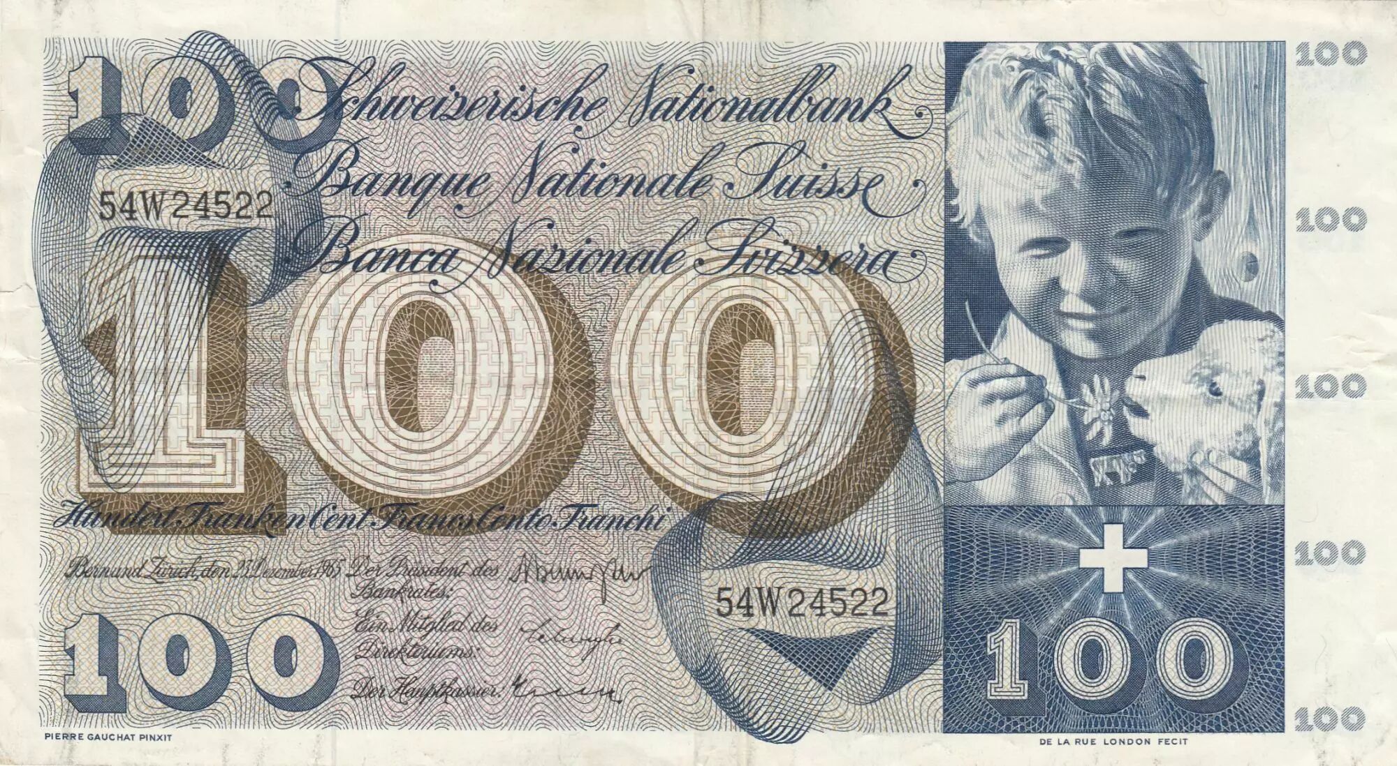 Billet Suisse 100 Francs - Enfant St Martin - 23-12-1965 - Série 54W