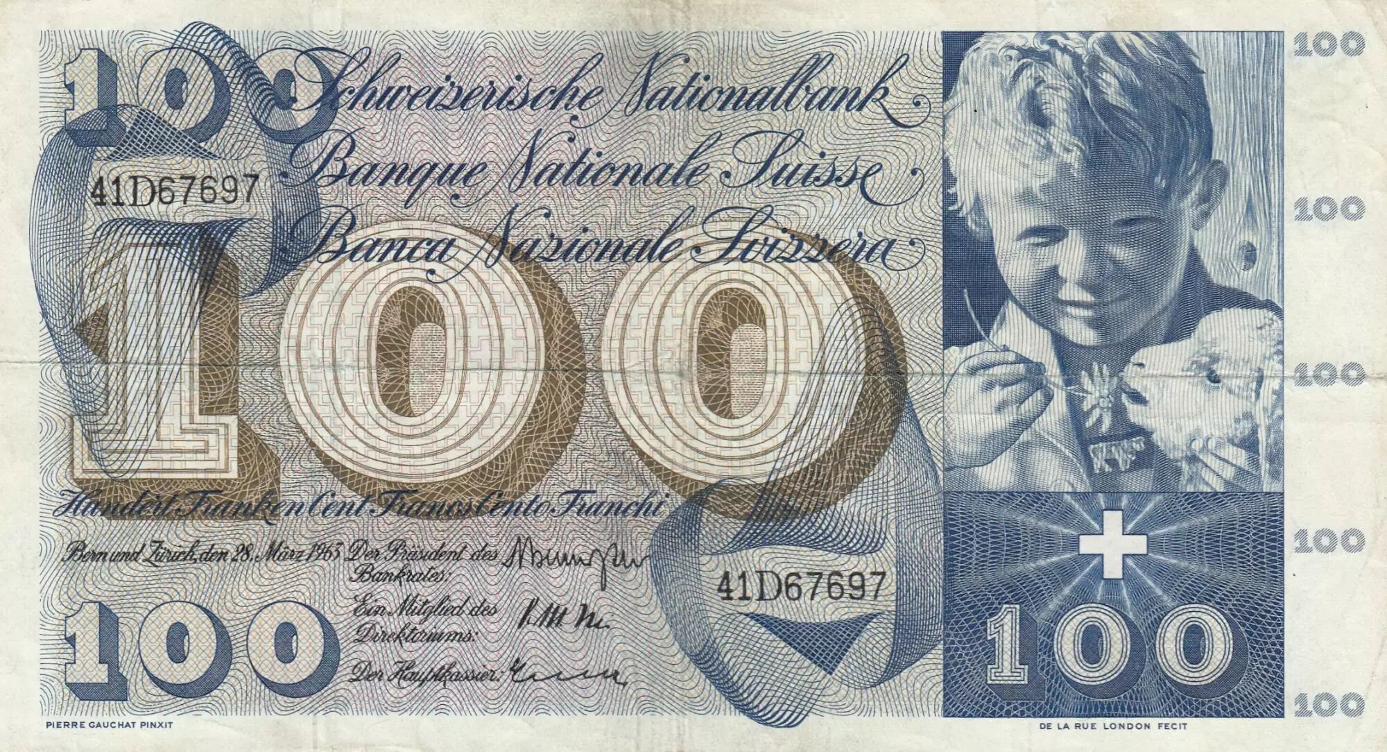 Billet Suisse 100 Francs - Enfant St Martin - 28-03-1963 - Série 41D