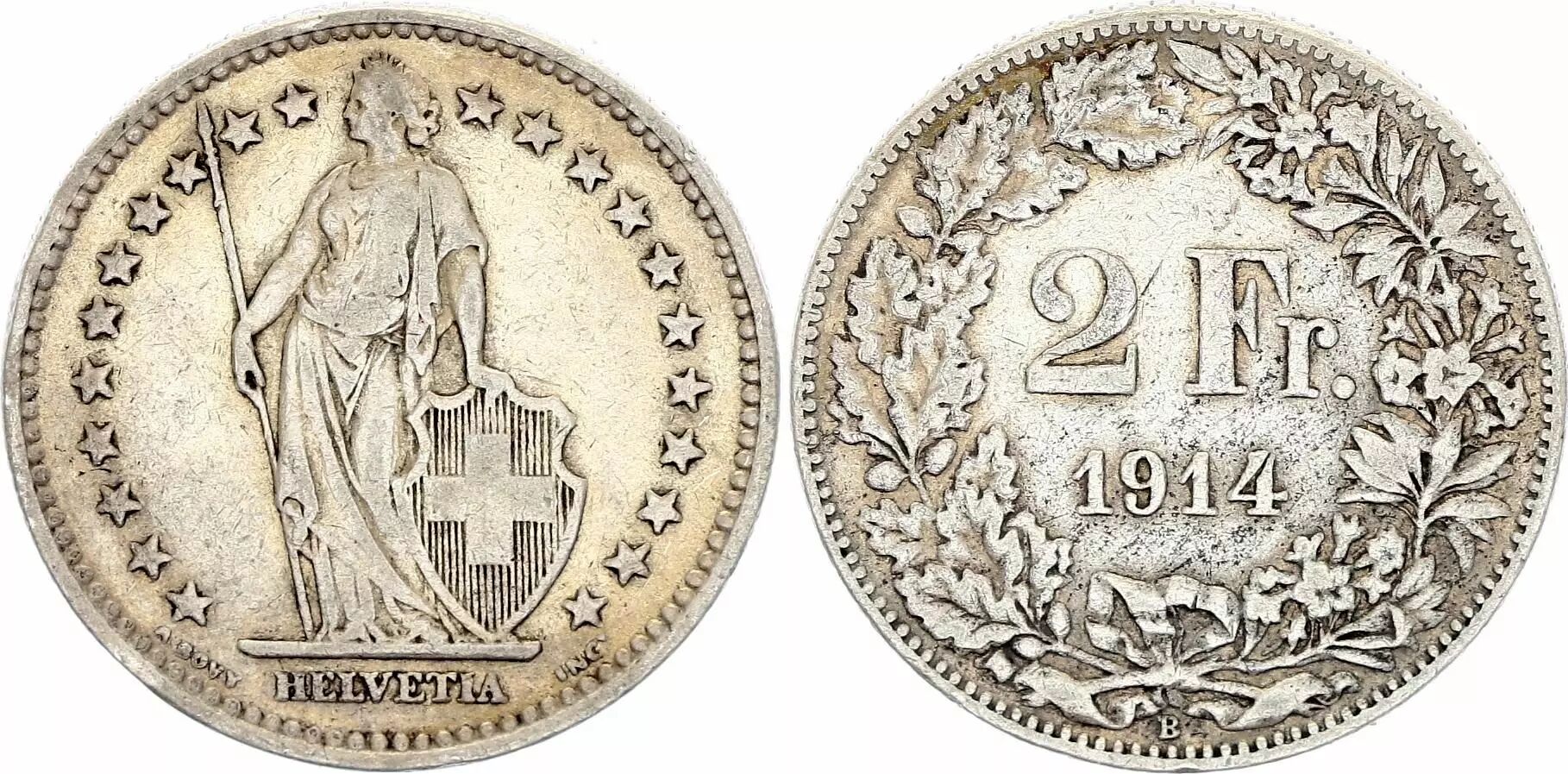 Accueil > Archivage > archivage-Monnaies du monde > Suisse 2 Francs - Helvetia - 1914 - B Berne - Argent