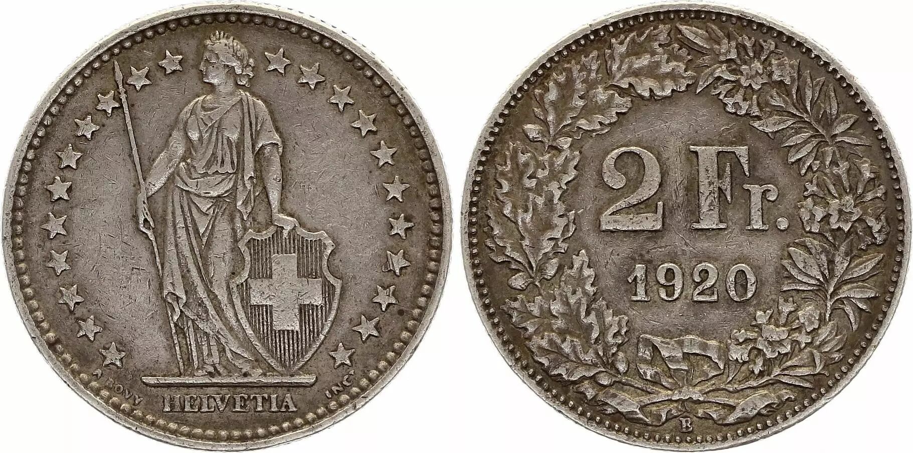 Accueil > Archivage > Suisse 2 Francs Helvetia - 1920 - B Bern - Argent