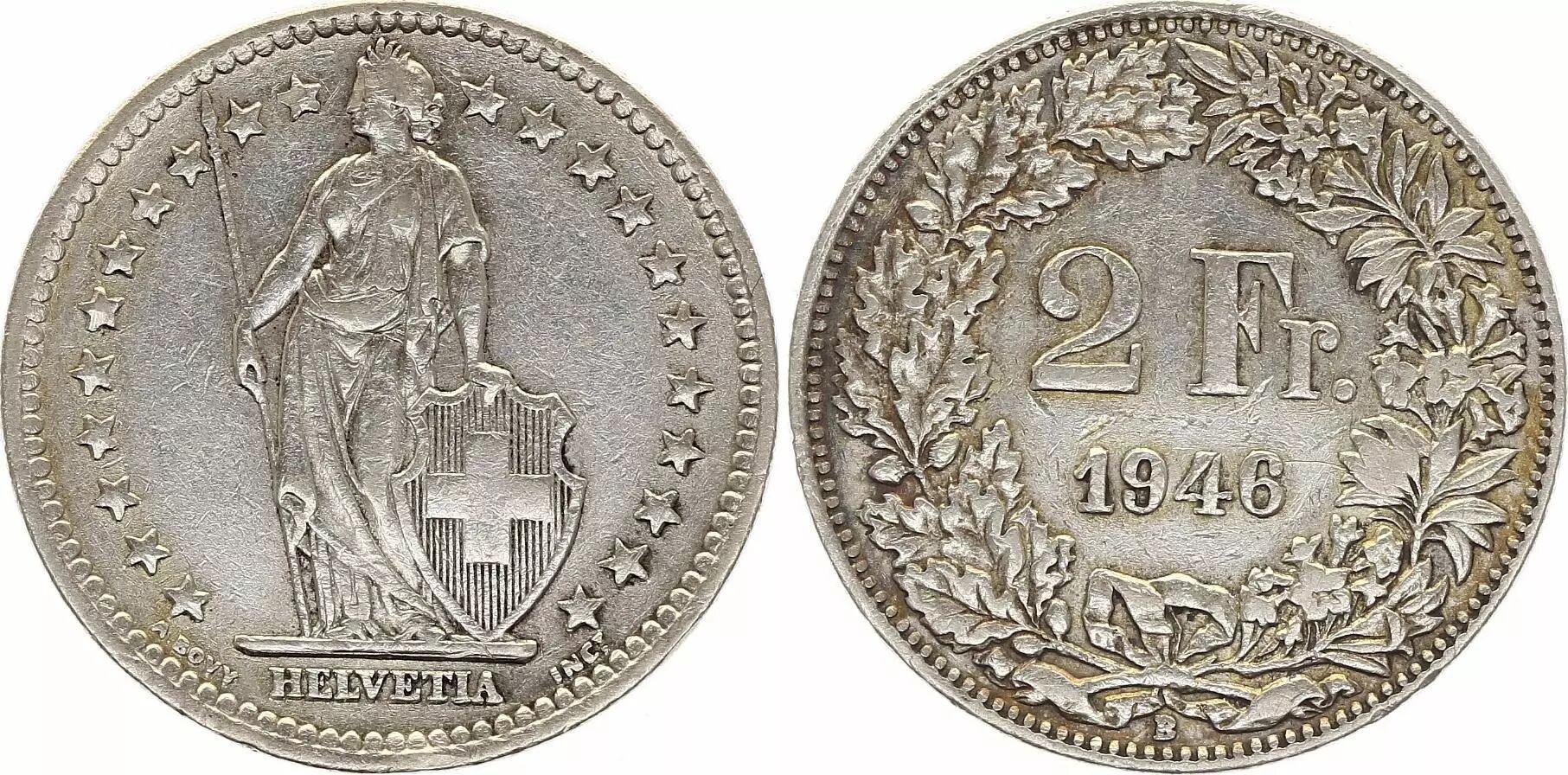 Accueil > Archivage > Suisse 2 Francs Helvetia - 1946 - B Bern - Argent