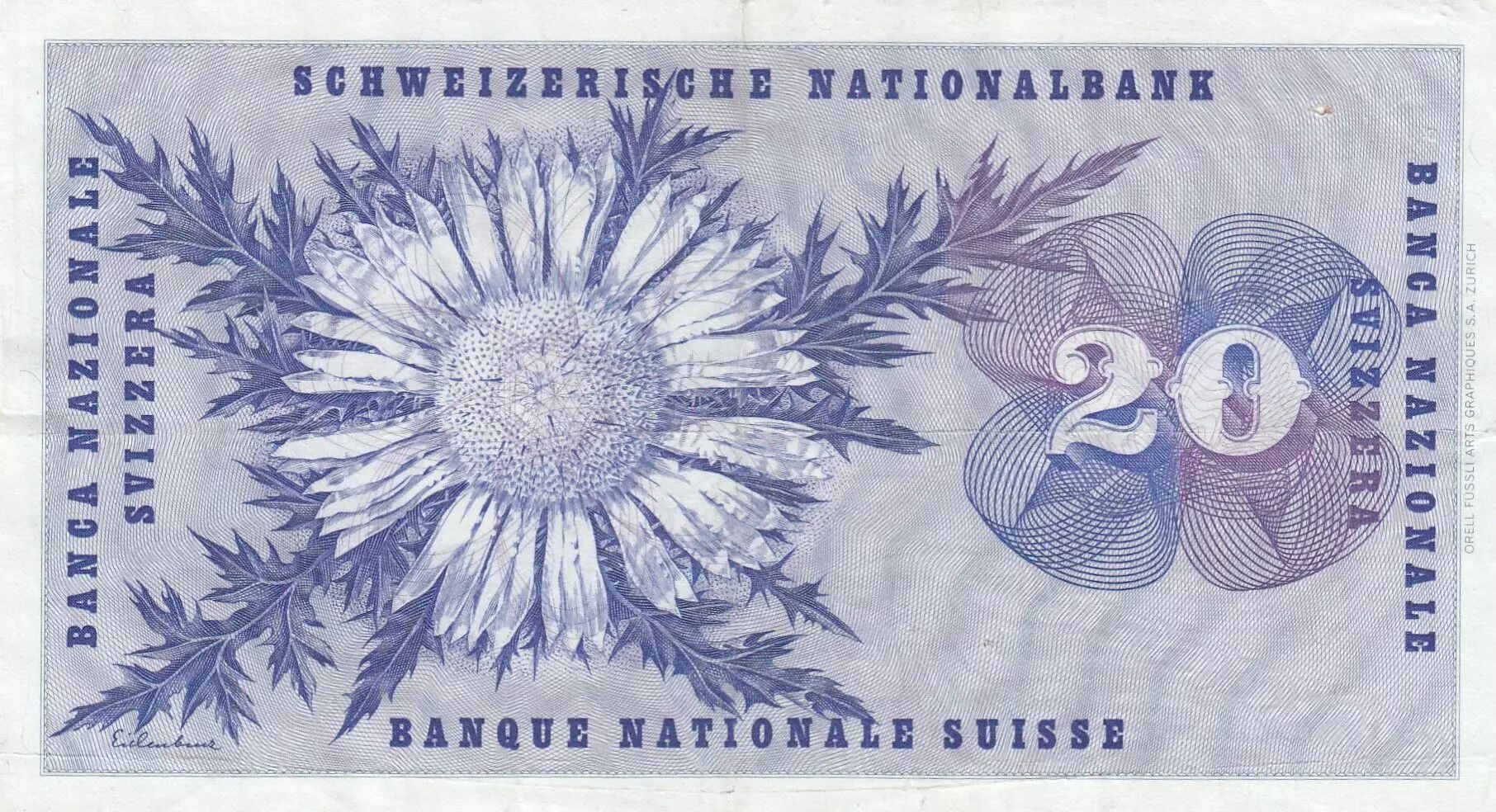 Accueil > Archivage > archivage-Billets du Monde > Suisse 20 Francs - Guillaume-Henri Dufour - Chardon argenté - 07-02-1974 - Série 97C