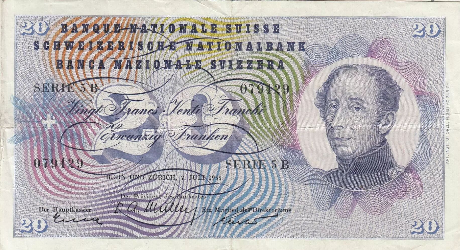 Accueil > Billets du Monde > Billets d'Europe > Suisse - Cantons Suisse > Suisse > Suisse 20 Francs - Guillaume-Henri Dufour - Chardon argenté - 07-07-1955 - Série 5B