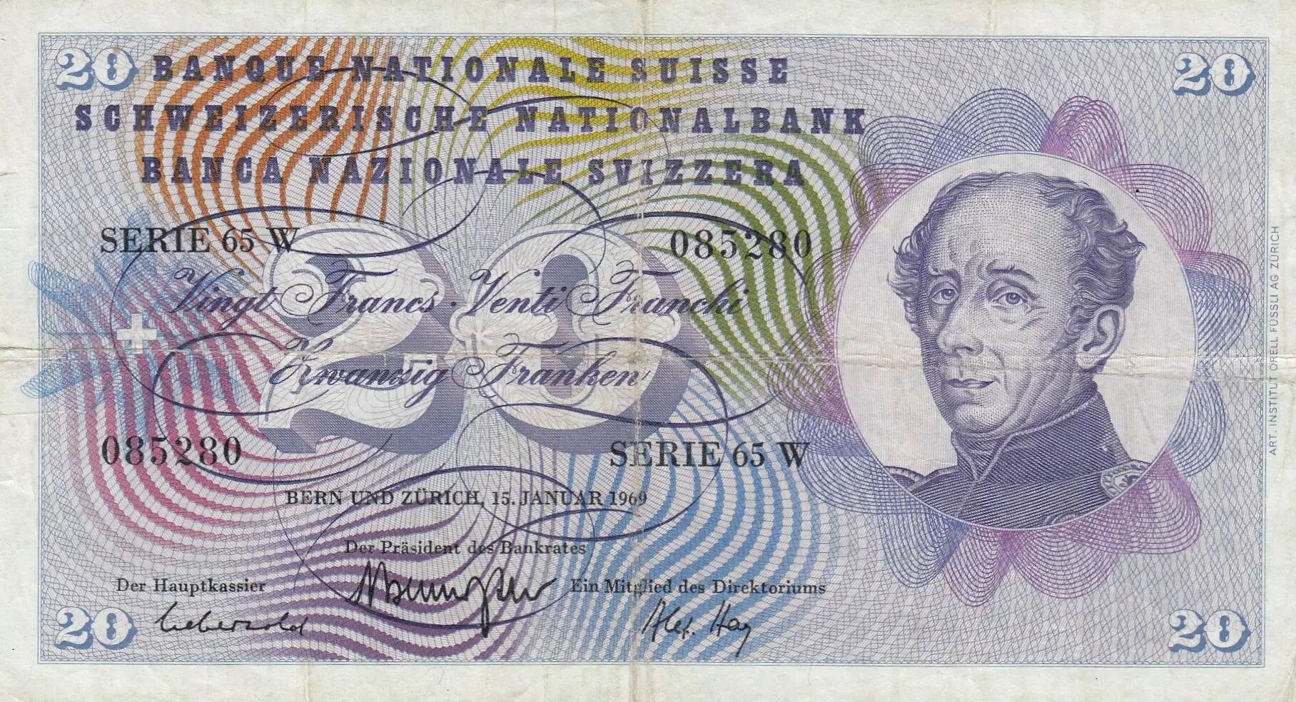 Billet Suisse 20 Francs - Guillaume-Henri Dufour - Chardon argenté - 15-01-1969 - Série 65W