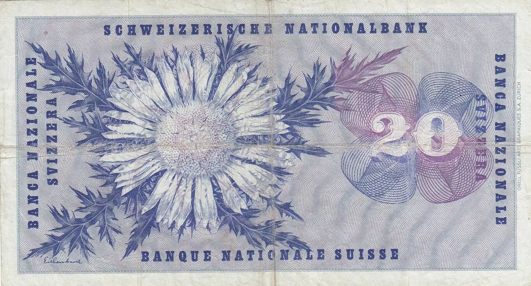 Accueil > Archivage > archivage-Billets du Monde > Suisse 20 Francs - Guillaume-Henri Dufour - Chardon argenté - 15-01-1969 - Série 65W