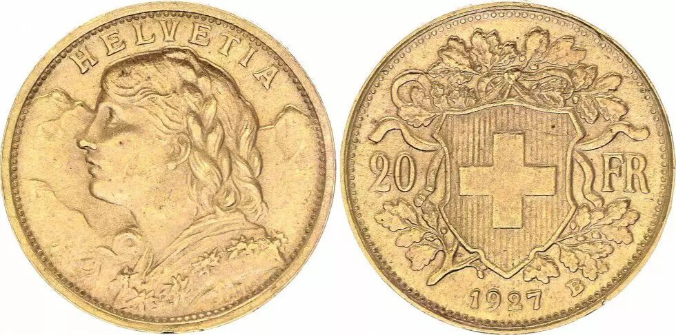 Accueil > Archivage > Suisse 20 Francs Vreneli 1927 - B