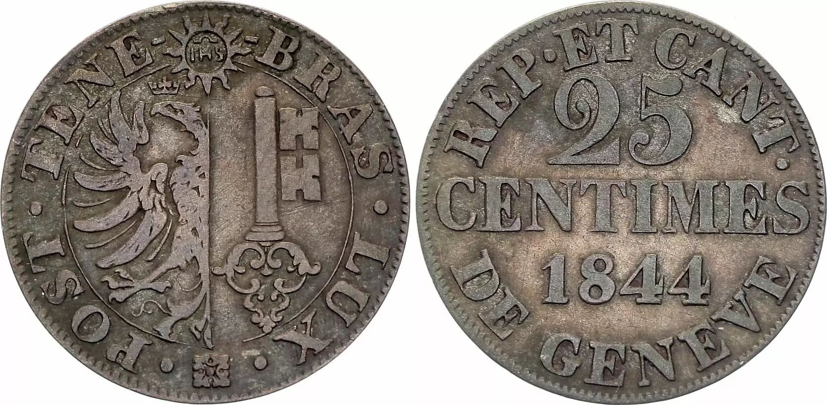 Accueil > Monnaies du monde > Monnaies d'Europe > Suisse - Cantons Suisse > Suisse 25 Centimes - Canton de Genève - 1844