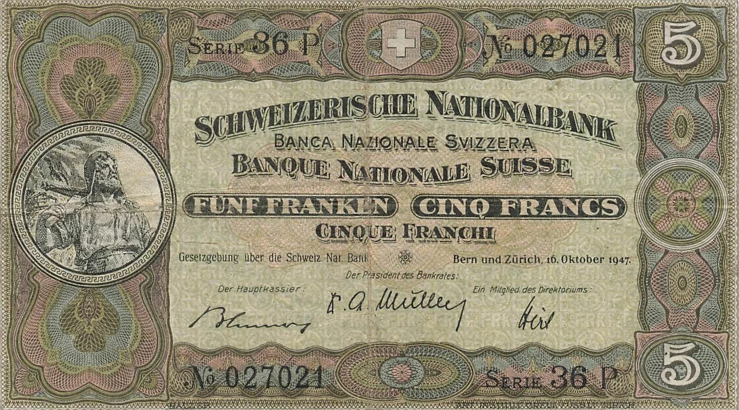 Billet Suisse 5 Francs - 16-10-1947 - P.11m