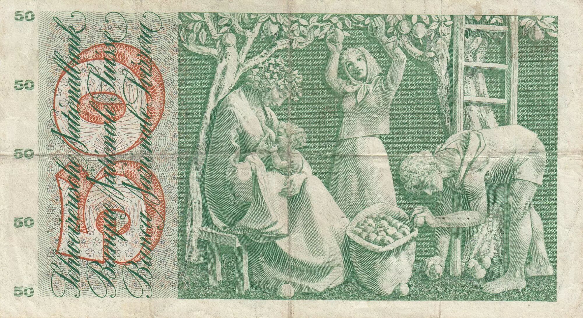 Accueil > Billets du Monde > Billets d'Europe > Suisse - Cantons Suisse > Suisse > Suisse 50 Francs Fillette - Cueillette des pommes - 1955 - P.47a