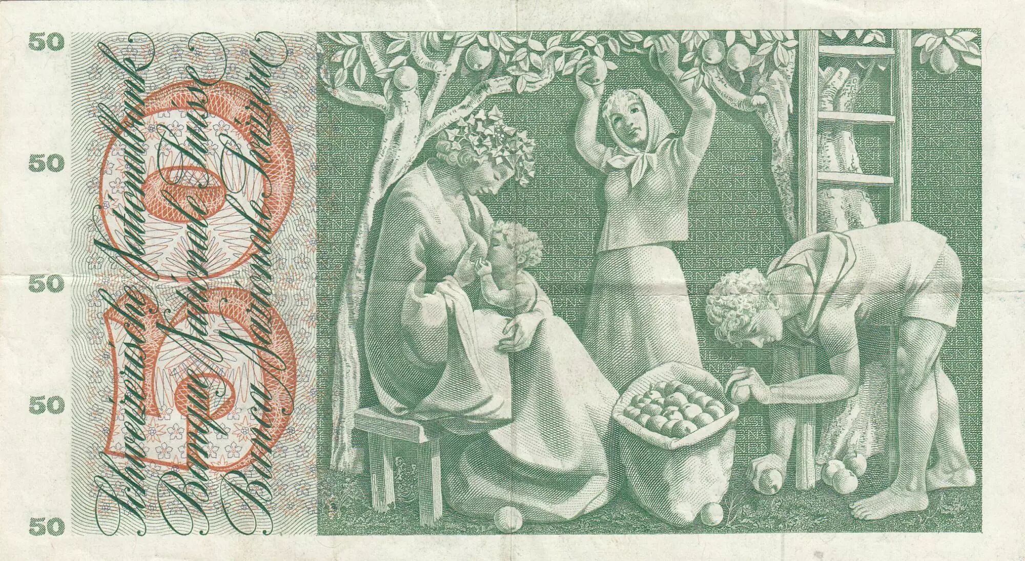 Accueil > Archivage > archivage-Billets du Monde > Suisse 50 Francs Fillette - Cueillette des pommes - 1955 - P.47a - Série 2G29678