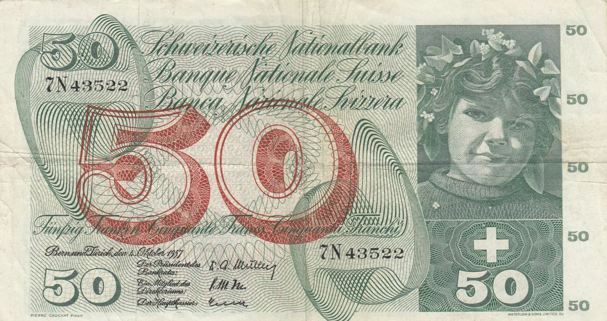 Billet Suisse 50 Francs - Récolte des pommes - 04-10-1957 - Série 7N