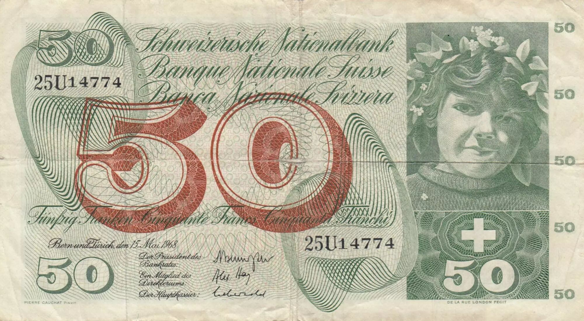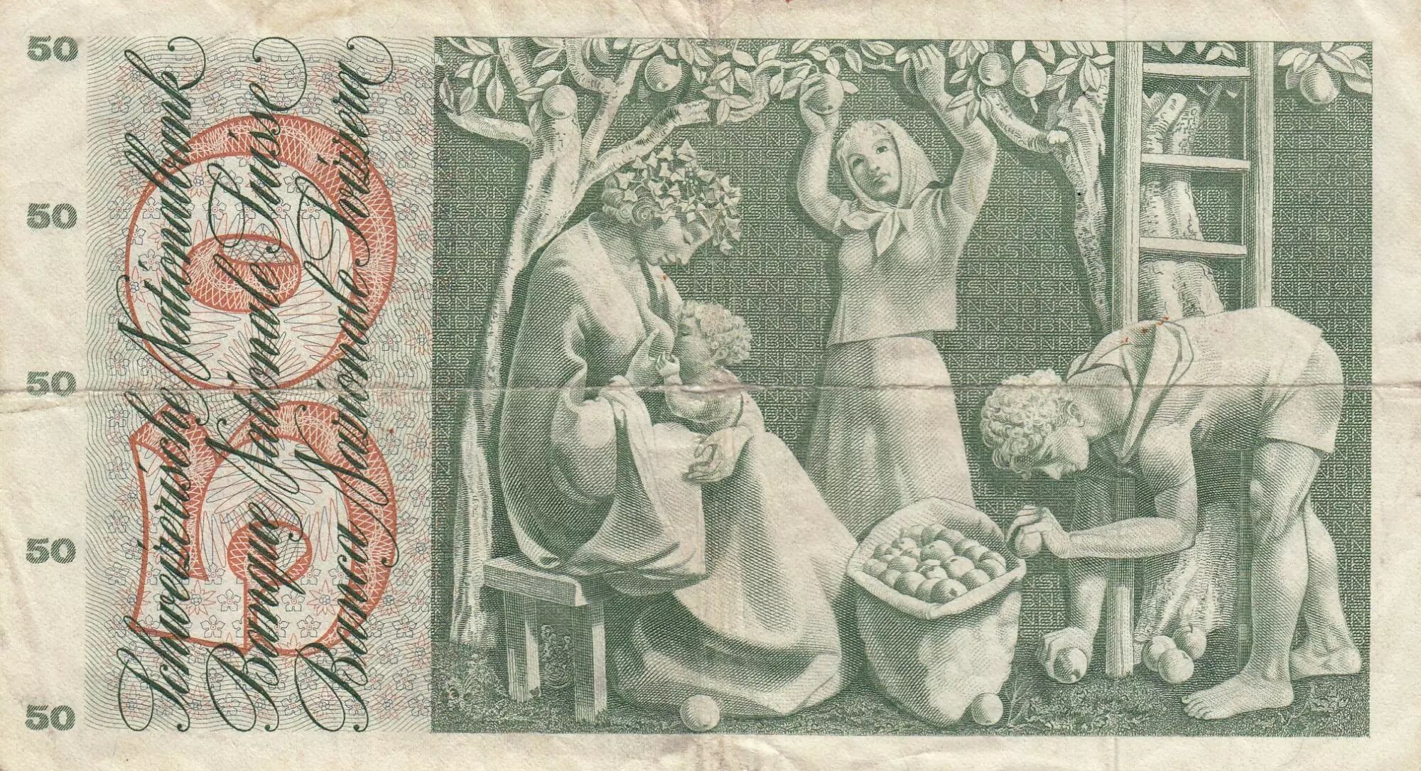 Billet Suisse 50 Francs - Récolte des pommes - 15-05-1968 - Série 25U