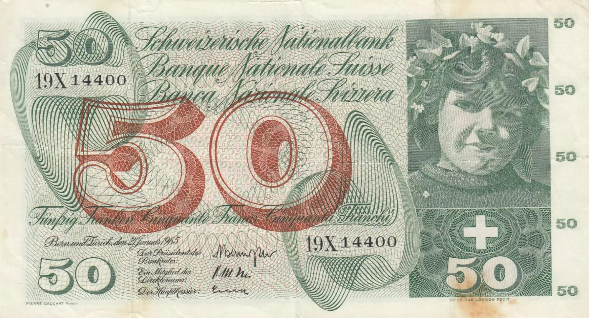 Billet Suisse 50 Francs - Récolte des pommes - 21-01-1965 - Série 19X