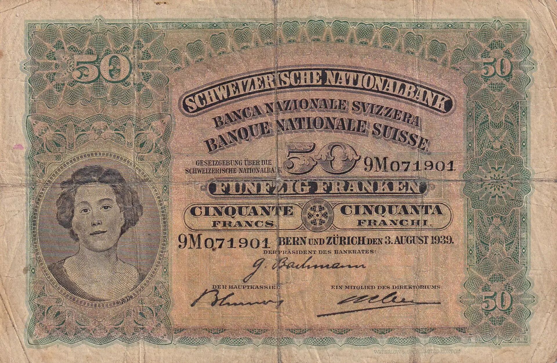 Billet Suisse 50 Francs Tête de Femme - 03-08-1939 - Série 9M