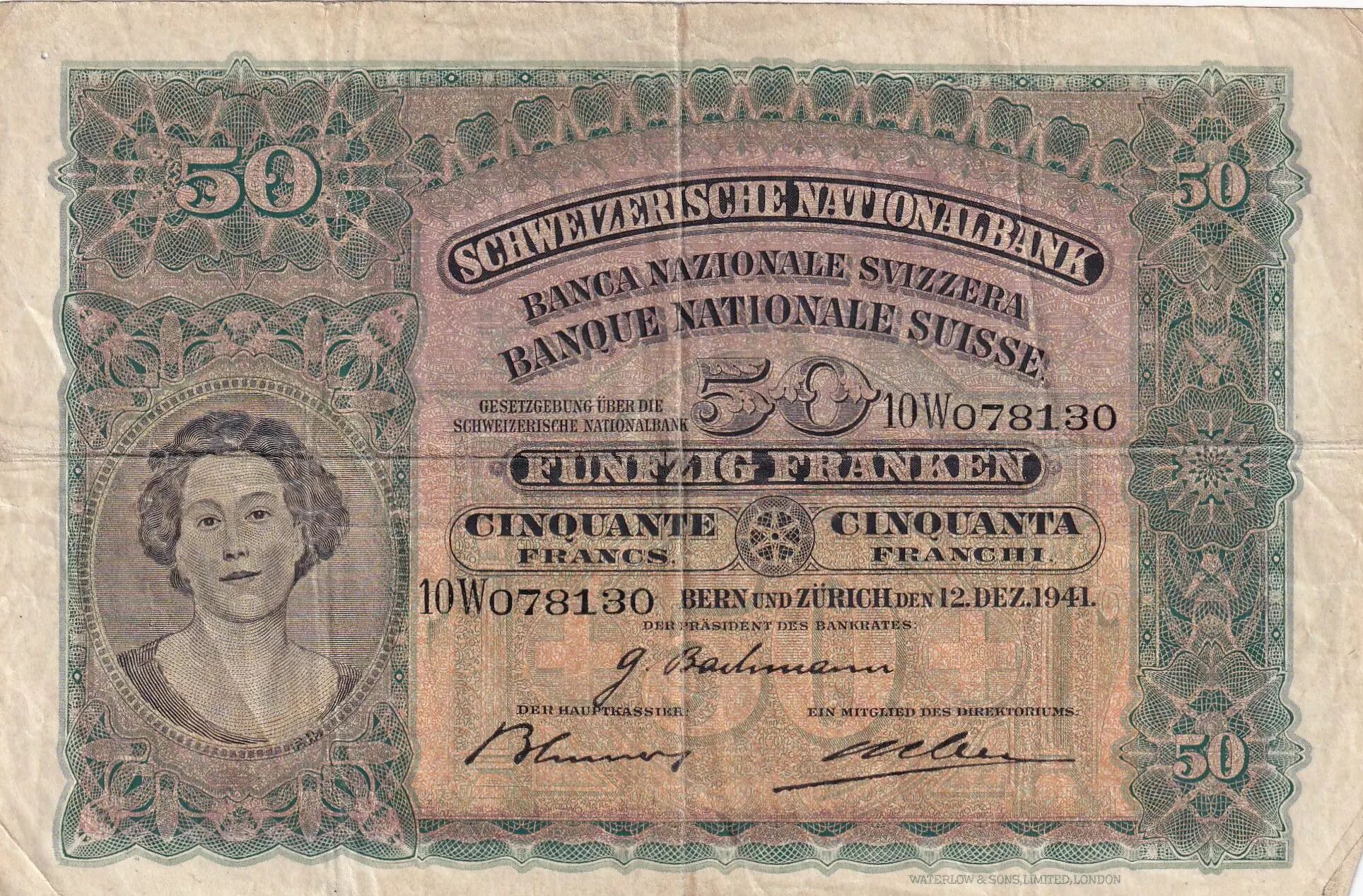 Billet Suisse 50 Francs Tête de Femme - 12-12-1941 - Série 10W