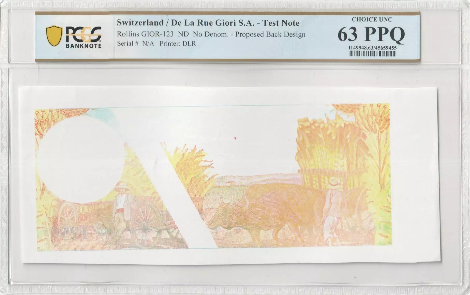 Accueil > Billets du Monde > Billets d'Europe > Suisse - Cantons Suisse > Suisse > Suisse Echantillon De la Rue Giori - Rollins GIOR-123 - Test note - UNIFACE