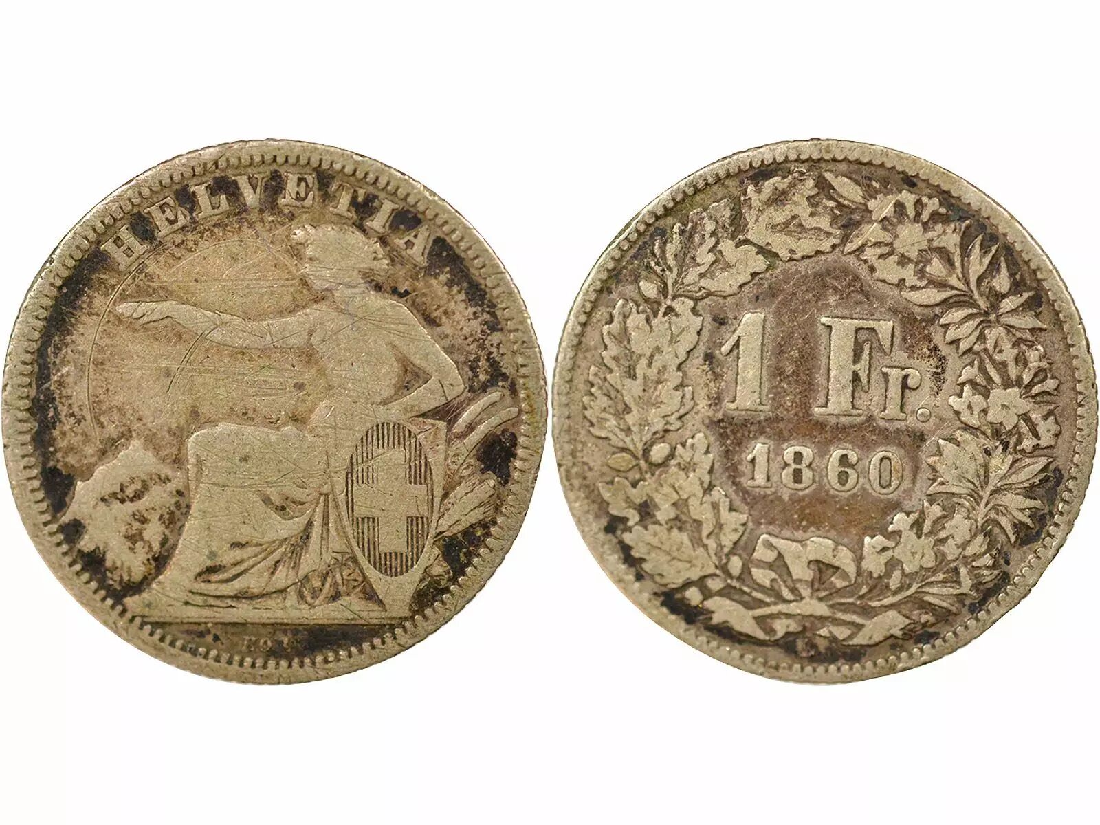 Pièce Suisse Franc Argent, Helvetia assise - 1860 B Berne