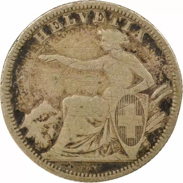 Accueil > Monnaies du monde > Monnaies d'Europe > Suisse - Cantons Suisse > Suisse > Suisse Franc Argent, Helvetia assise - 1860 B Berne