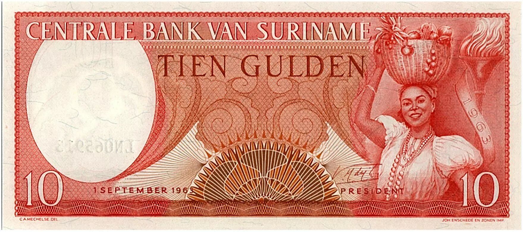 Billet Suriname 10 Gulden, Femme et Panier de fruits - 1963 - Neuf - P.121