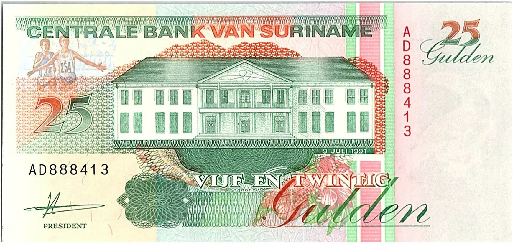 Billet Suriname 25 Gulden, Anthony Neste (nageur) - 1991 - Neuf - P.138 a