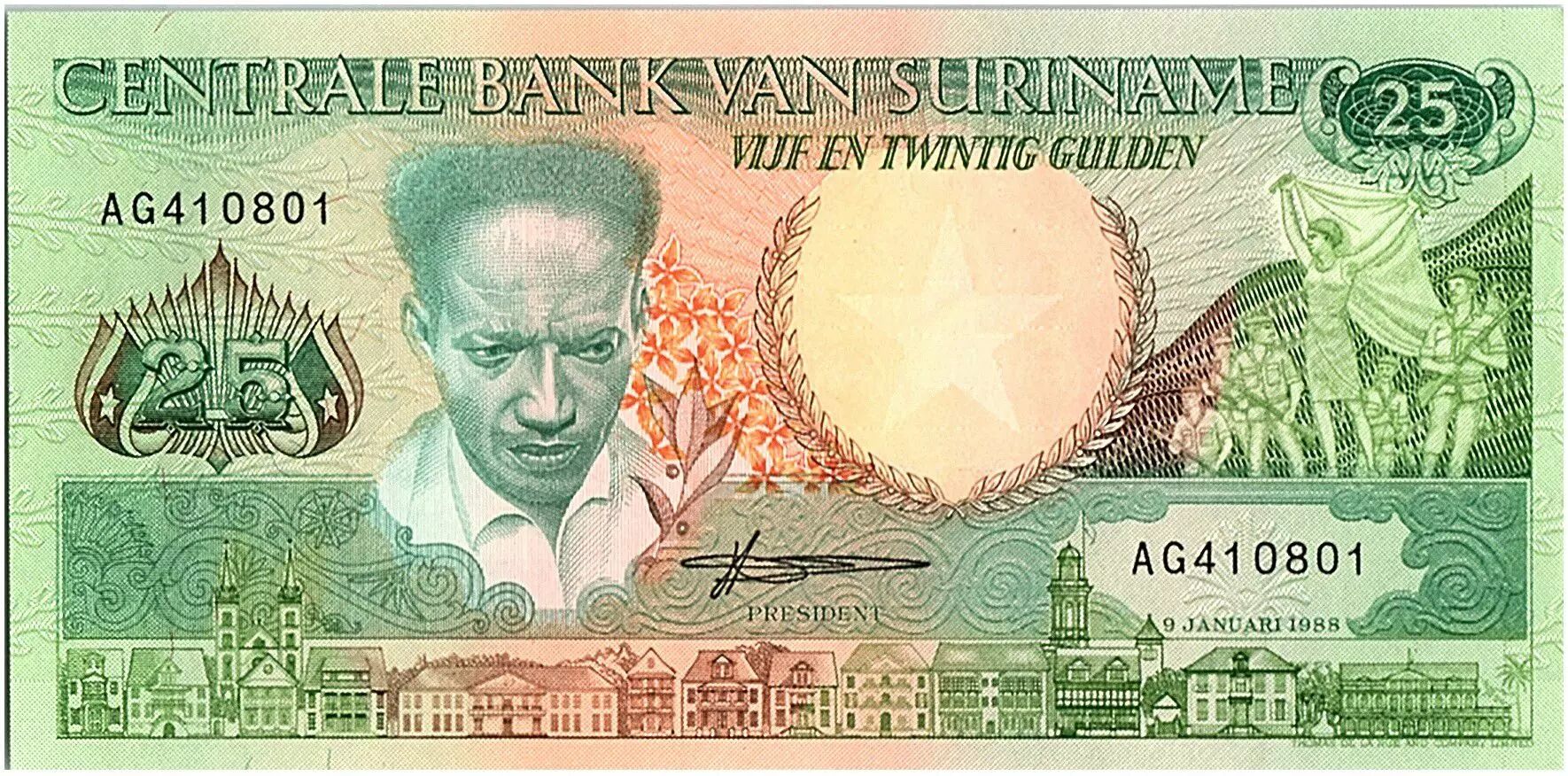 Billet Suriname 25 Gulden, Anton Dekom - Toucan - 1988 - Neuf - P.132 b