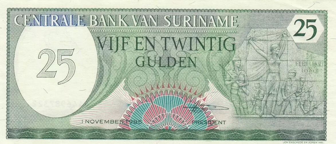 Banknote Suriname 25 Gulden - Revolution Day 1980 - 1985 - P.126