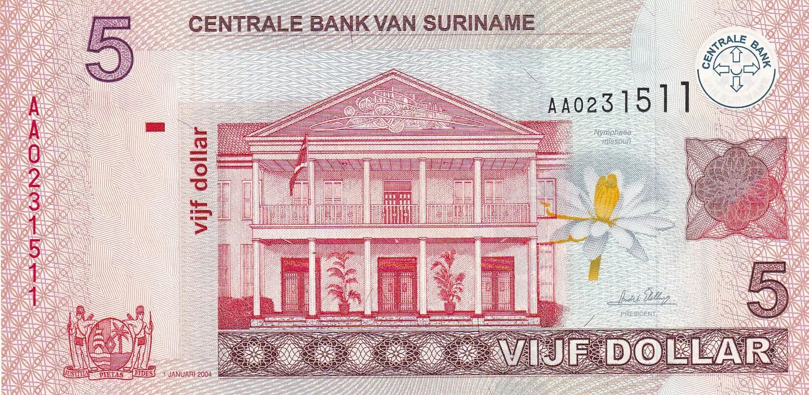 Billet Suriname 5 Dollars - Banque - Gran-Rio Sula - 2004 - P.158a