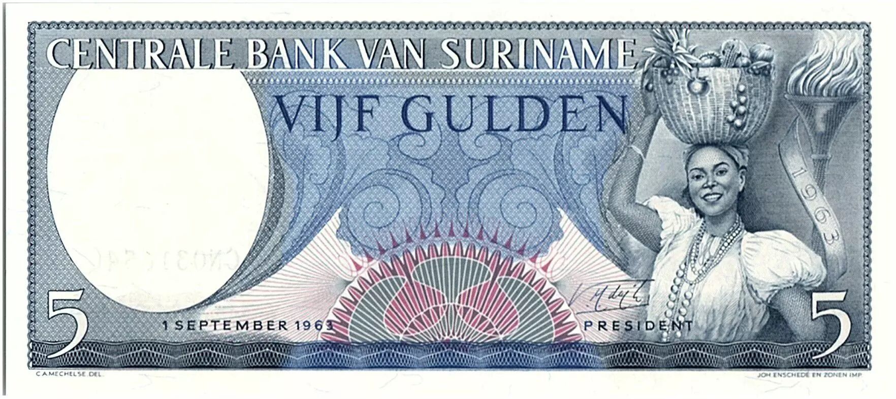 Banknote Suriname 5 Gulden, Woman with basket - 1963 - Neuf - P.120