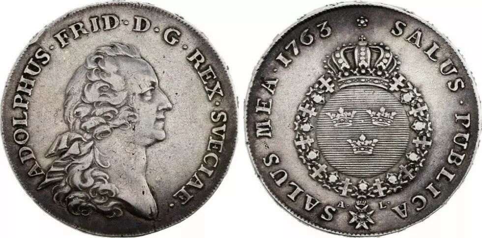 Adolf Frederick - Arms 1763 AL. Very rare.Issuing date : 1763