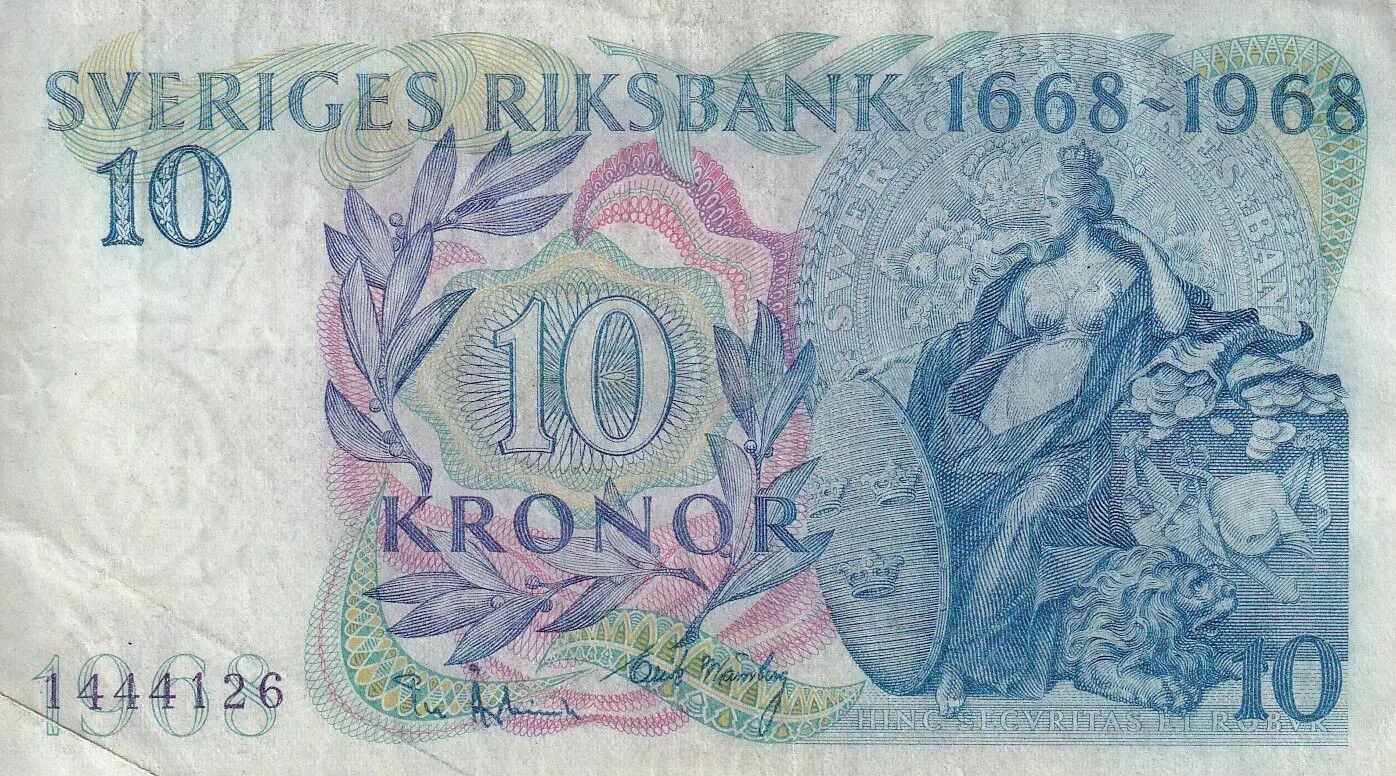 Banknote Sweden 10 Kronor - 30th anniversary of the Swedish Bank - 1968 - P.56