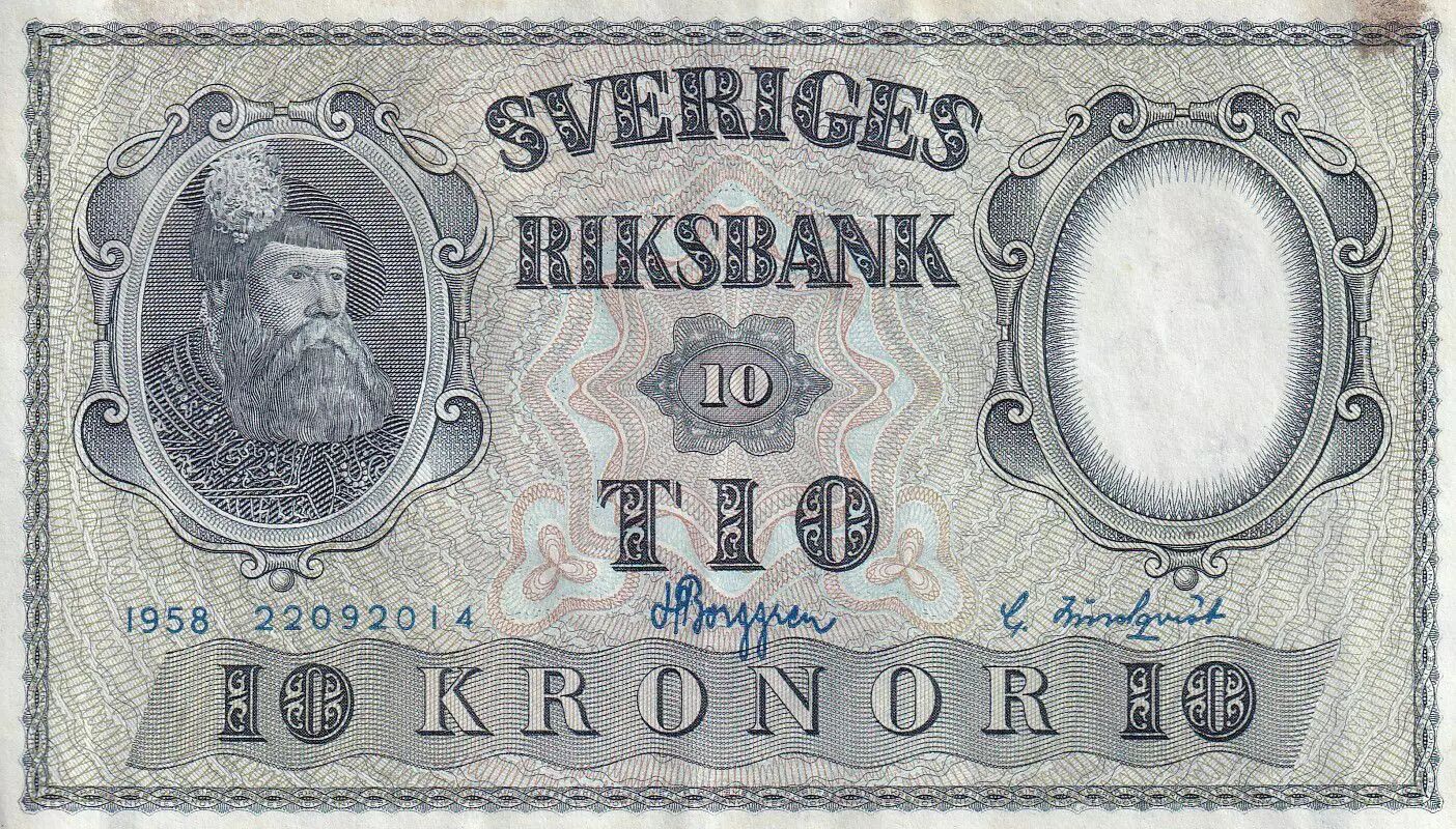 Banknote Sweden 10 Kronor - King Gustaf Vasa - 1958 - P.43f