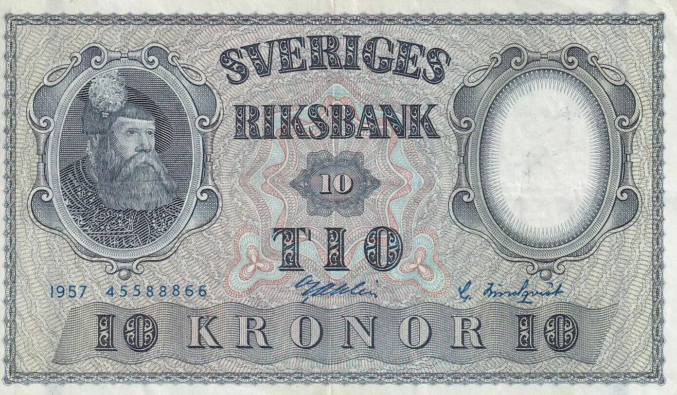 Banknote Sweden 10 Kronor - Roi Gustaf Vasa - 1957 - P.43e