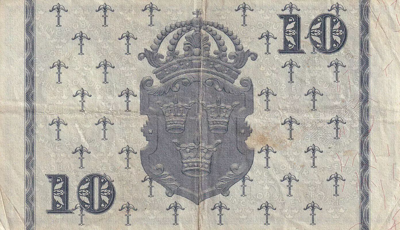 Home > > Sweden 10 Kronor - Roi Gustaf Vasa - 1958 - F to VF - P.43c