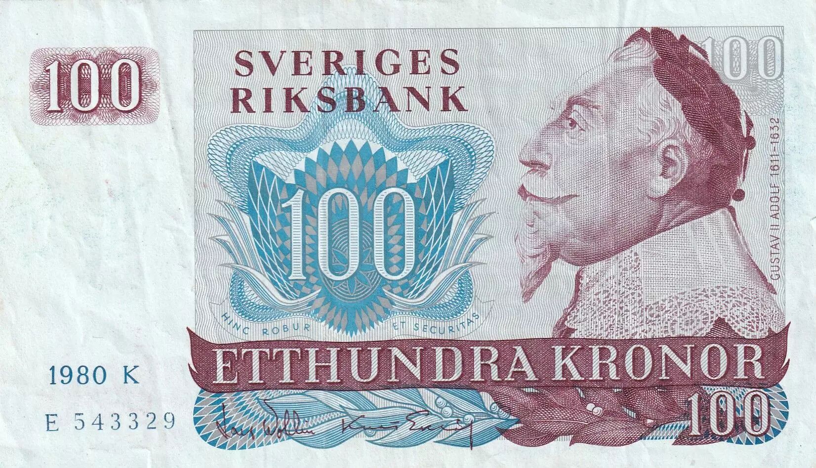 Home > > Sweden 100 Kronor - Gustav II Adolf - Boat - 1980 - Serial K
