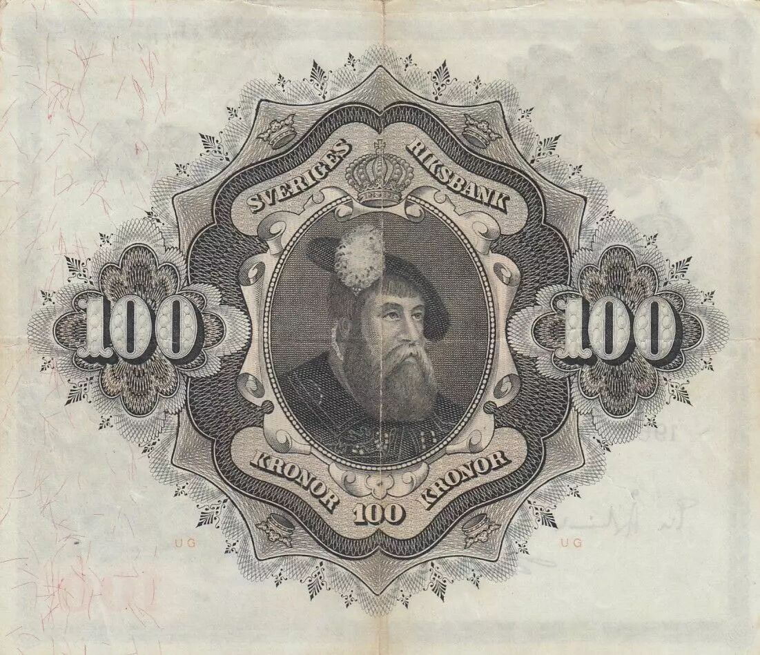 Home > World Banknotes > European Banknotes > Sweden > Sweden 100 Kronor - Svea - Gustav Vasa - 1960 - Serial S - P.48b