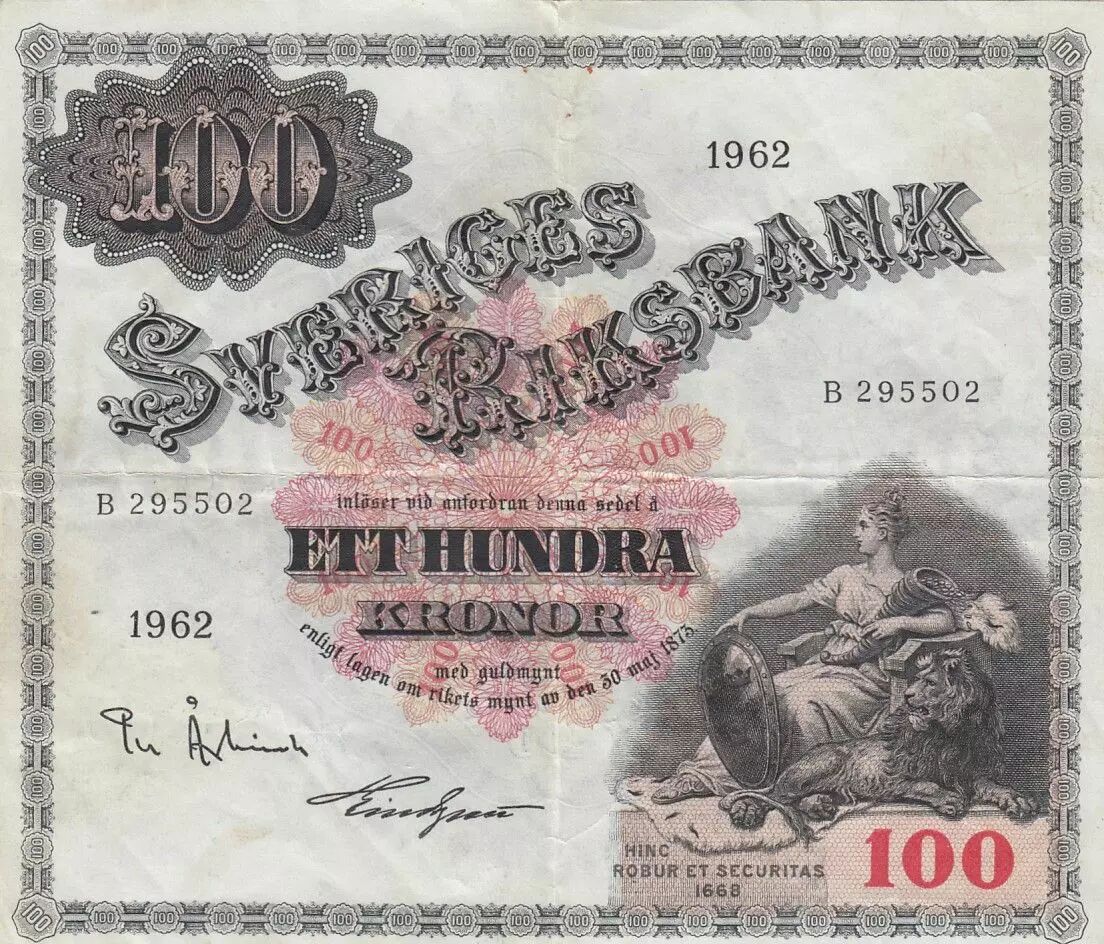 Banknote Sweden 100 Kronor - Svea - Gustav Vasa - 1962 - Serial B - P.48d