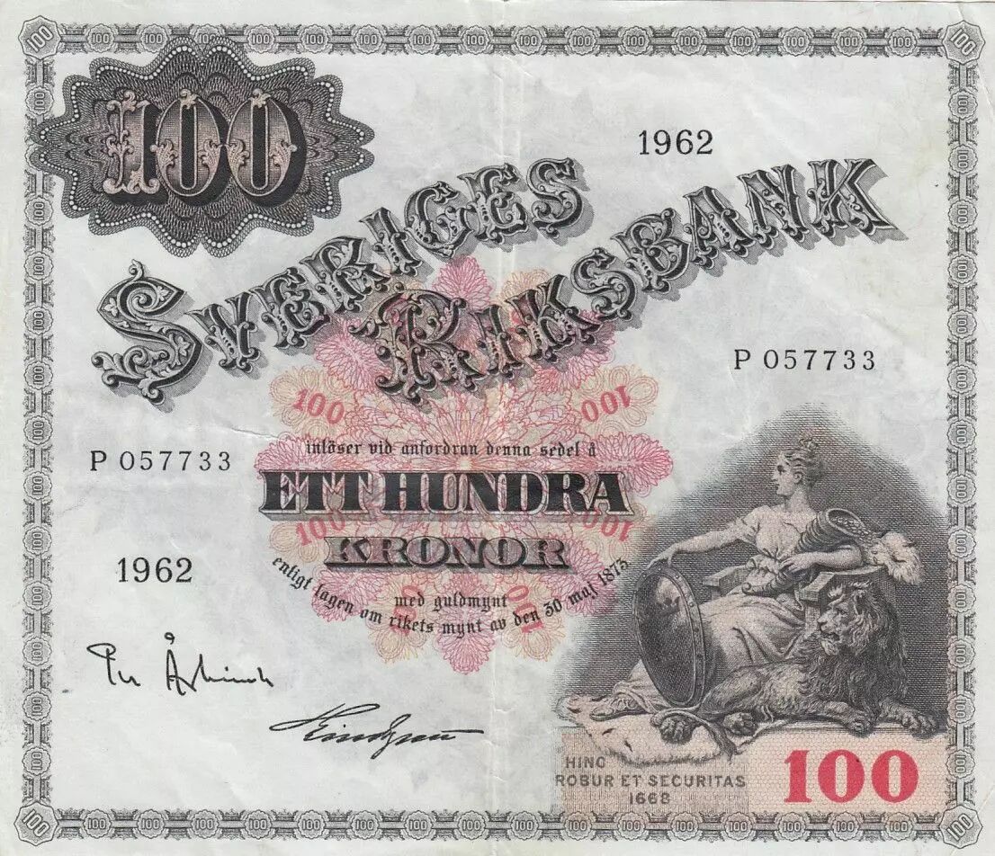 Home > > Sweden 100 Kronor - Svea - Gustav Vasa - 1962 - Serial P - P.48d