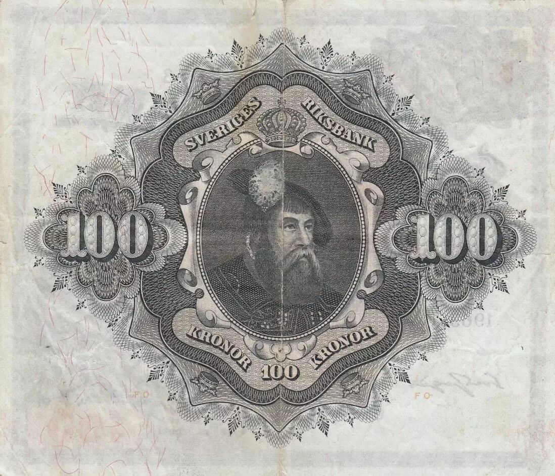 Banknote Sweden 100 Kronor - Svea - Gustav Vasa - 1963 - Serial D - P.48e