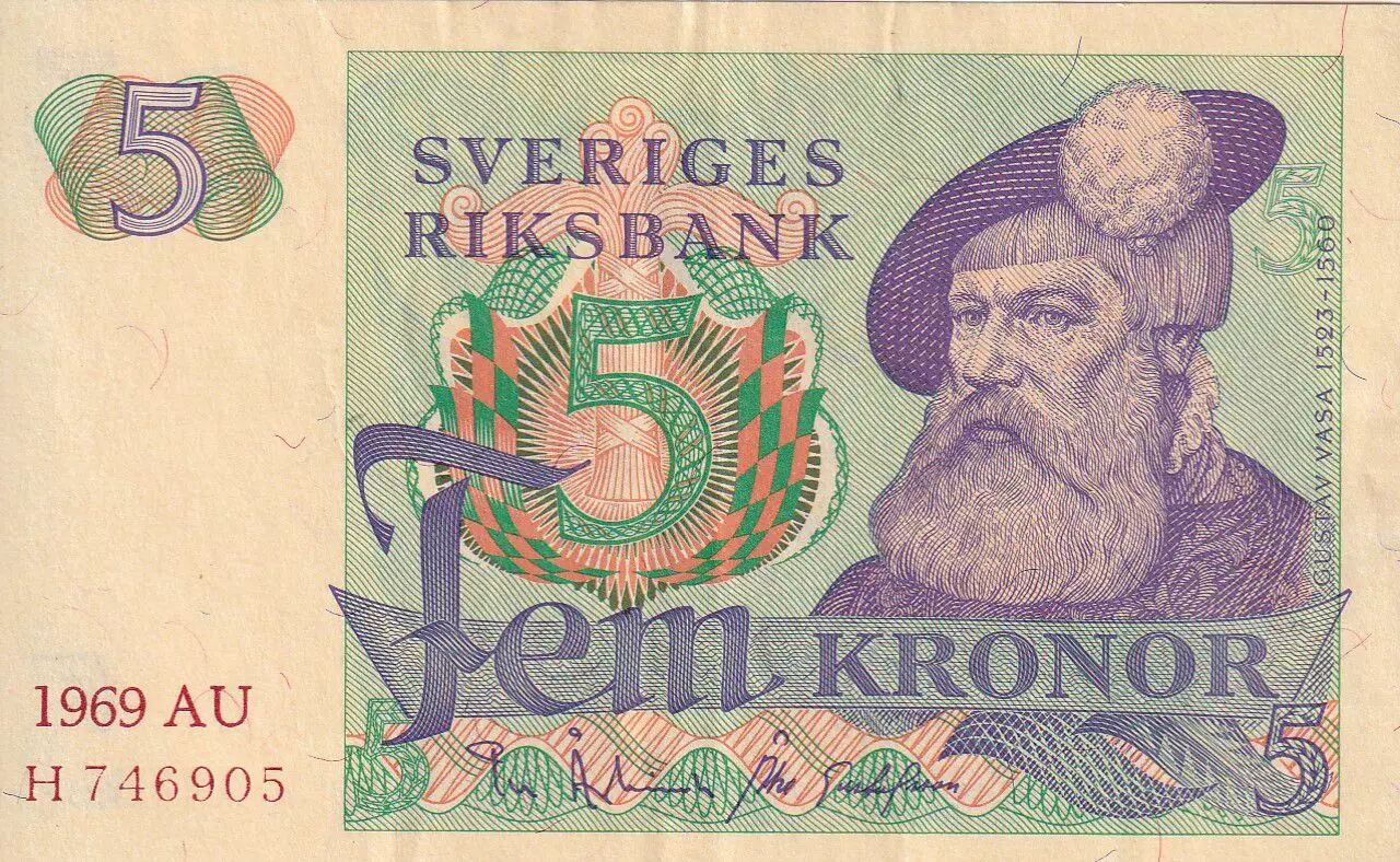 Banknote Sweden 5 Kronor - Gustav Vasa - 1969 - Serial AU - P.51a
