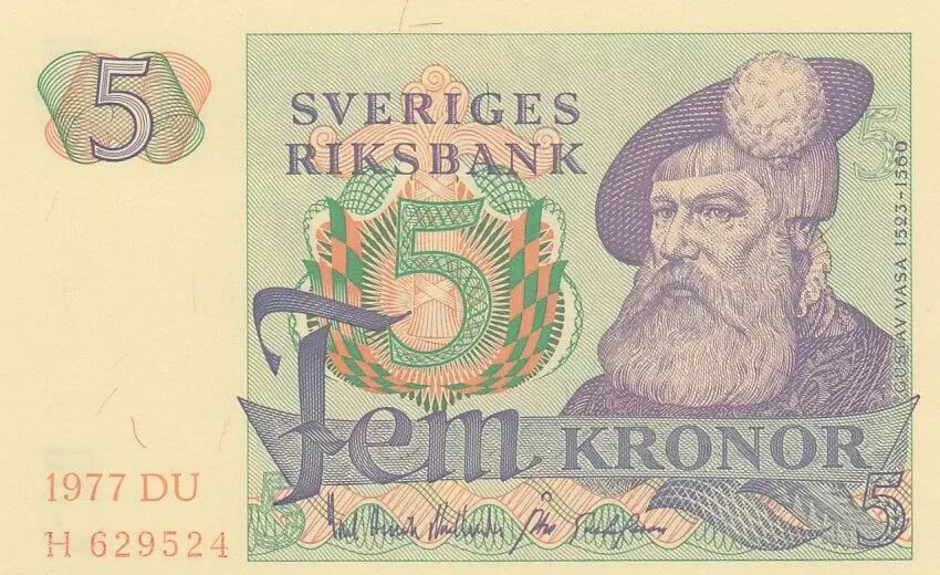 Banknote Sweden 5 Kronor - Gustav Vasa - 1977 - DU - P.51