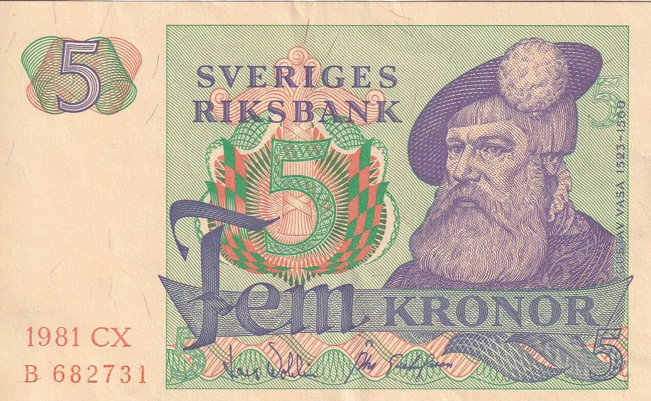 Banknote Sweden 5 Kronor - Gustav Vasa - 1981 - Serial CX - P.51d