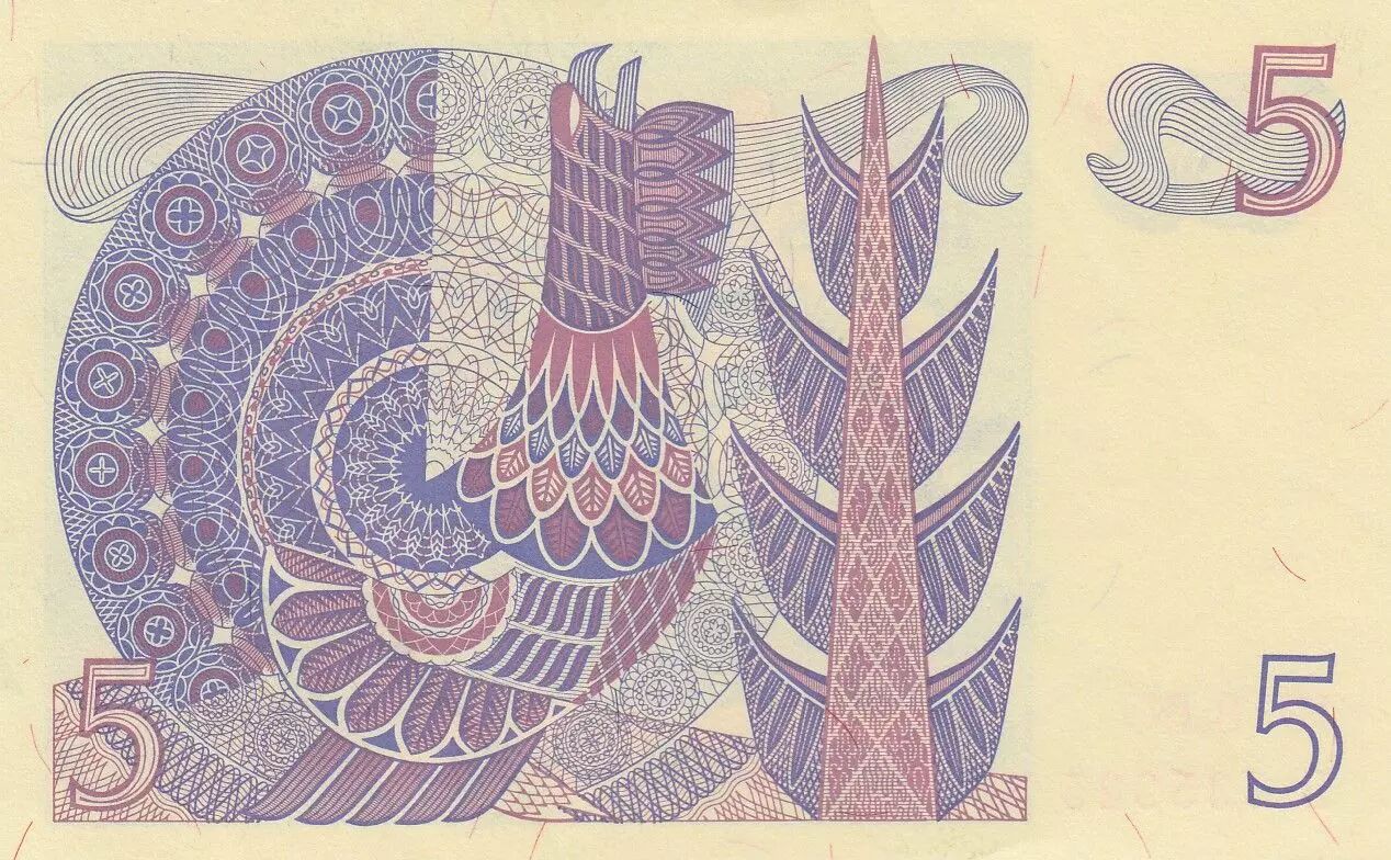 The back of the banknote depicts a rooster. This ornamental motif occupies the central part of this side of the banknote.