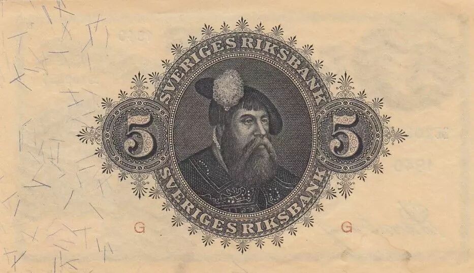 Banknote Sweden 5 Kronor Svea - Gustav Vasa - 1940 - M.108855