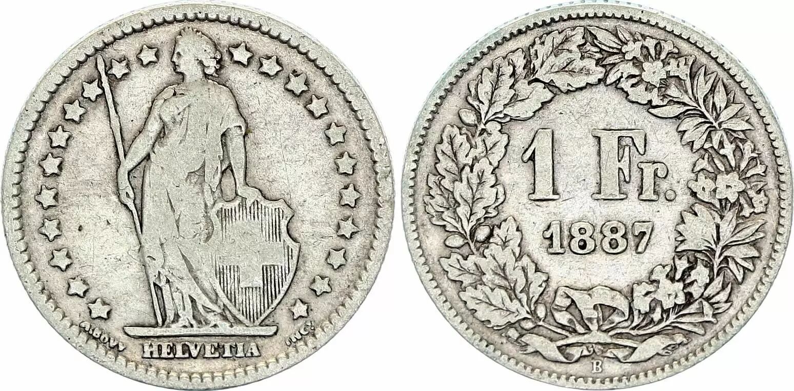 Coin Switzerland 1 Franc Helvetia - 1887 - B Bern - Silver