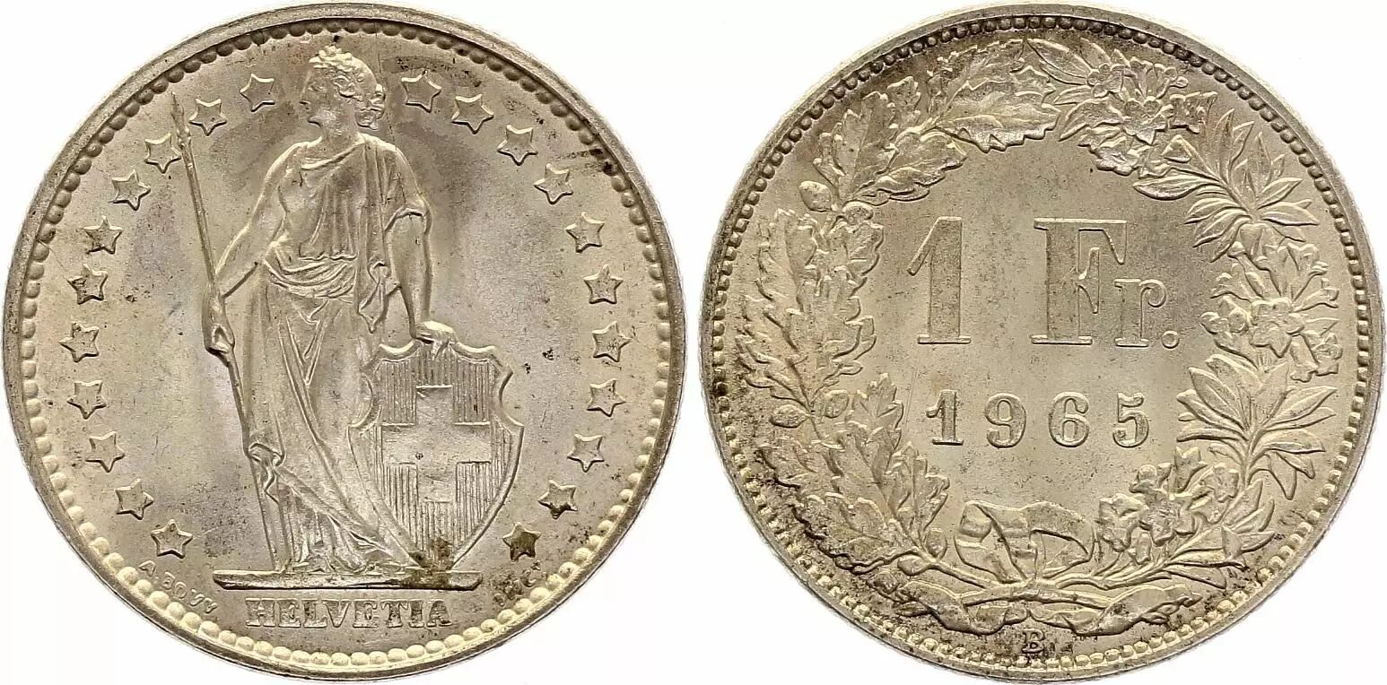 Coin Switzerland 1 Franc Helvetia - 1965 - B Bern - Silver