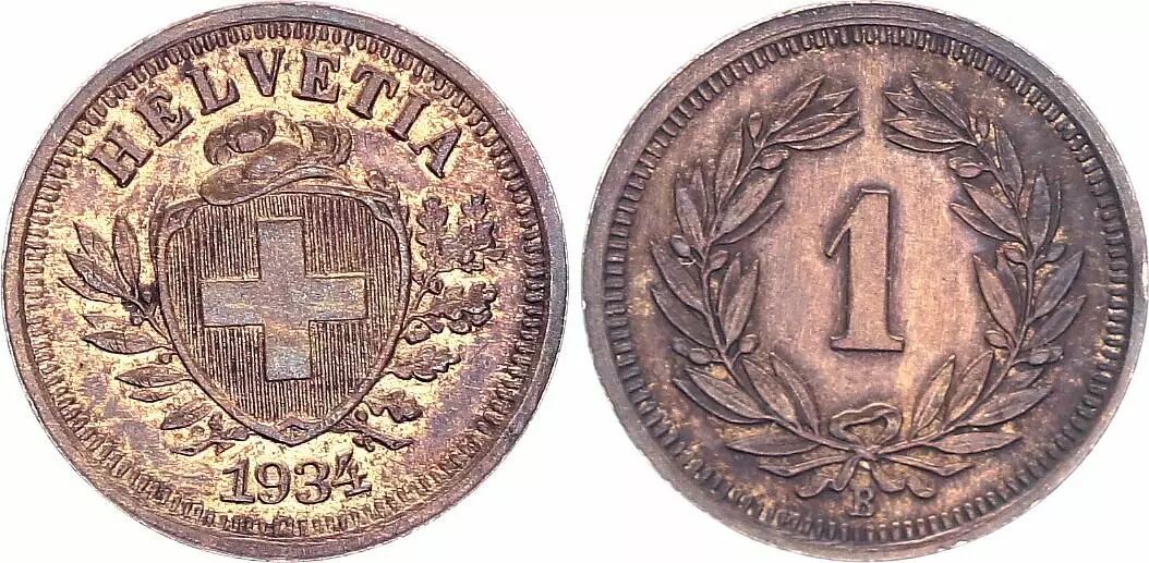 Home > > Switzerland 1 Rappen Helvetia - 1934 B - XF - KM.3